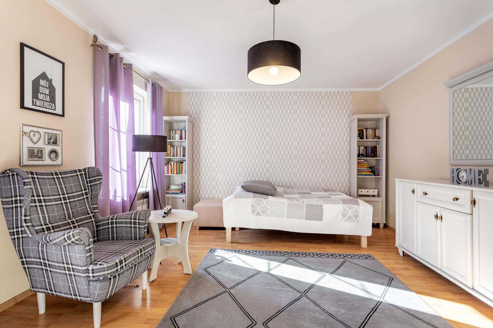 5 przestronnych pokoi (w tym dwa z garderobami i jedna łazienka), dodatkowa łazienka, antresola.