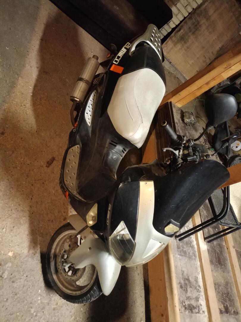 Skuter Zumico Aion 50 poj. 2t. Sprawny, stal kilka lat, odpala Bez problemu. Do wyregulowania gaźnik, zmienić żarówkę od kierunku. 900 do negocjacji